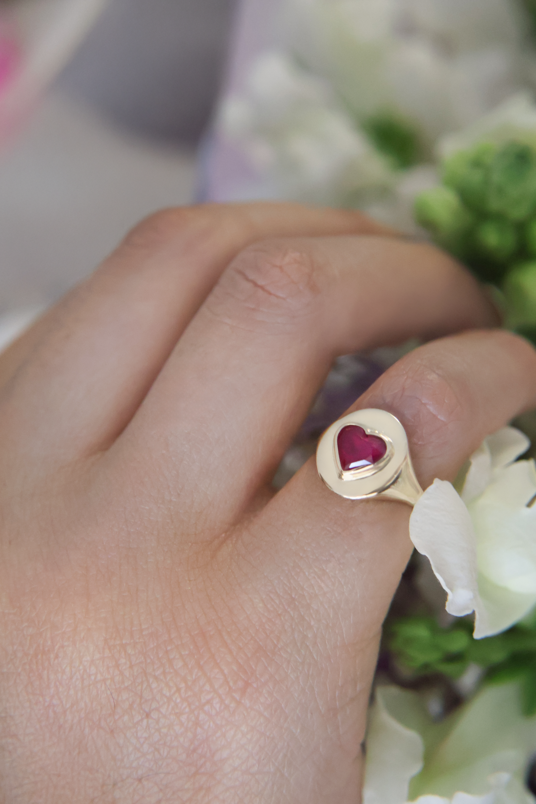 Hecho con un toque de nobleza y elegancia, nuestro anillo Signet es un clásico con un corazón en el centro