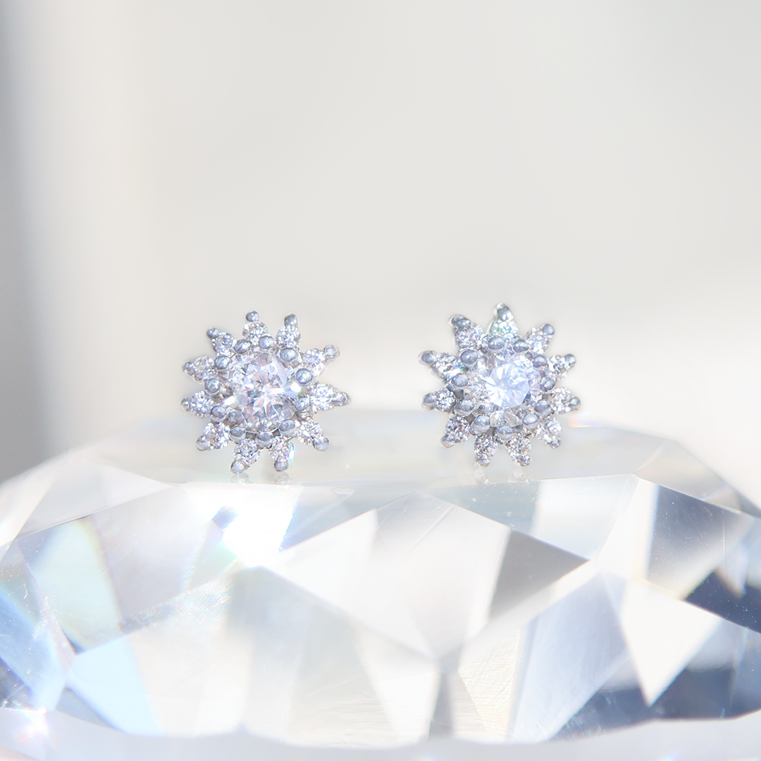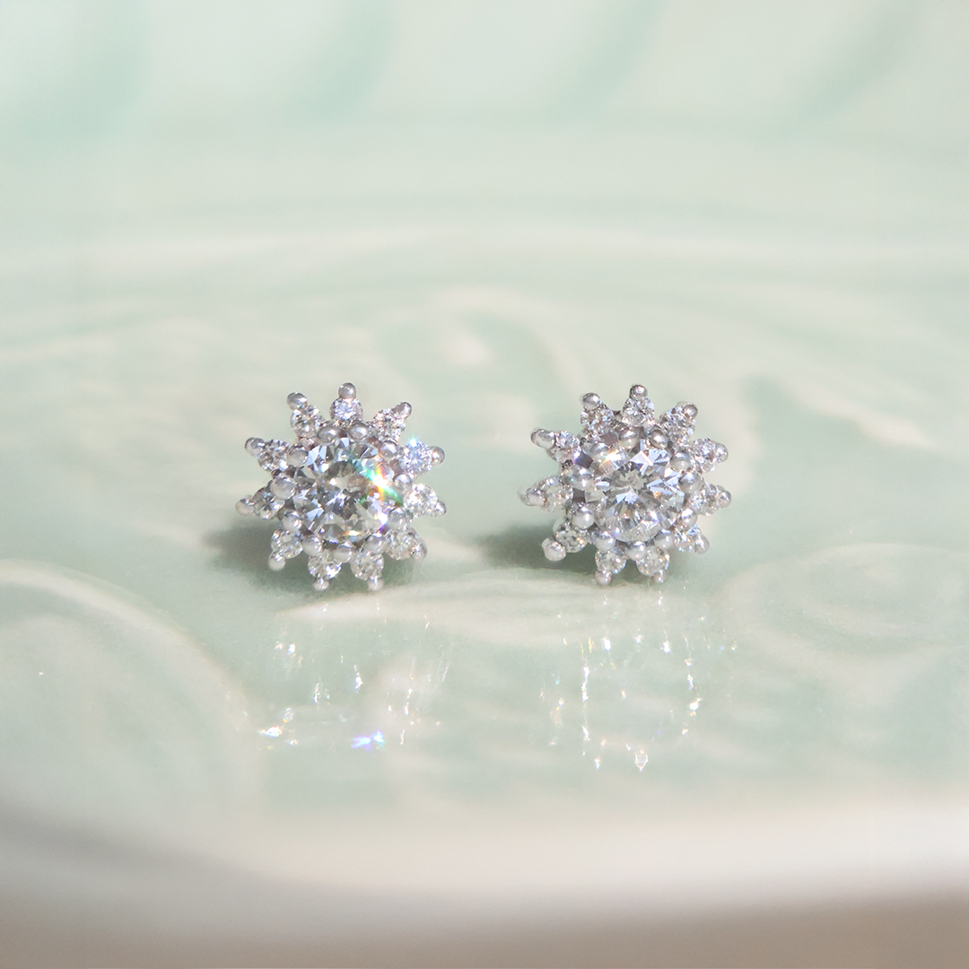 Unos aretes de realeza con centro de diamantes de 3.3mm y halo de 11 diamantes de 1mm, da un brillo impresionante.