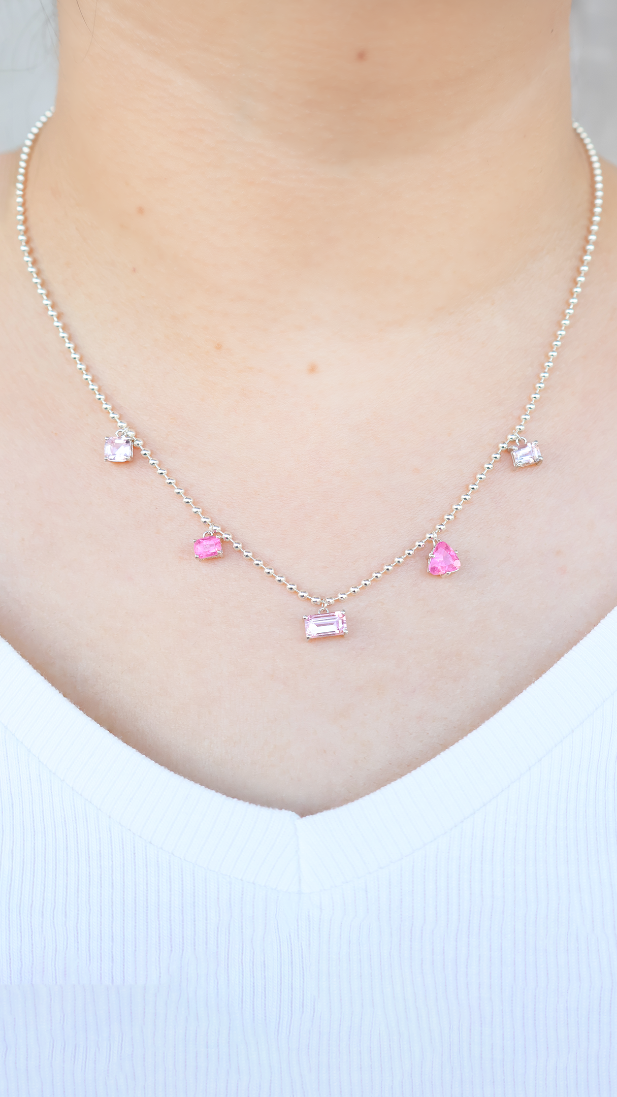 Collar de 5 turmalinas en cadena caviar que resalta y luce súper girly.