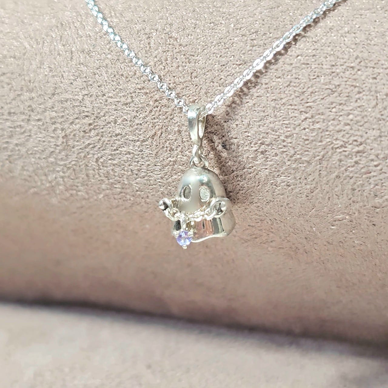 👻 Boo!!! Celebra este Halloween con nuestro nuevo dije súper tierno de fantasmita cargando su calaverita de gema.