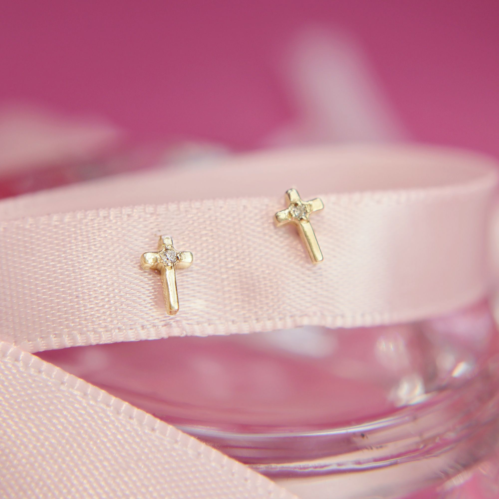 Flat Back Cruz mini con Diamante * Oro Amarillo 14k