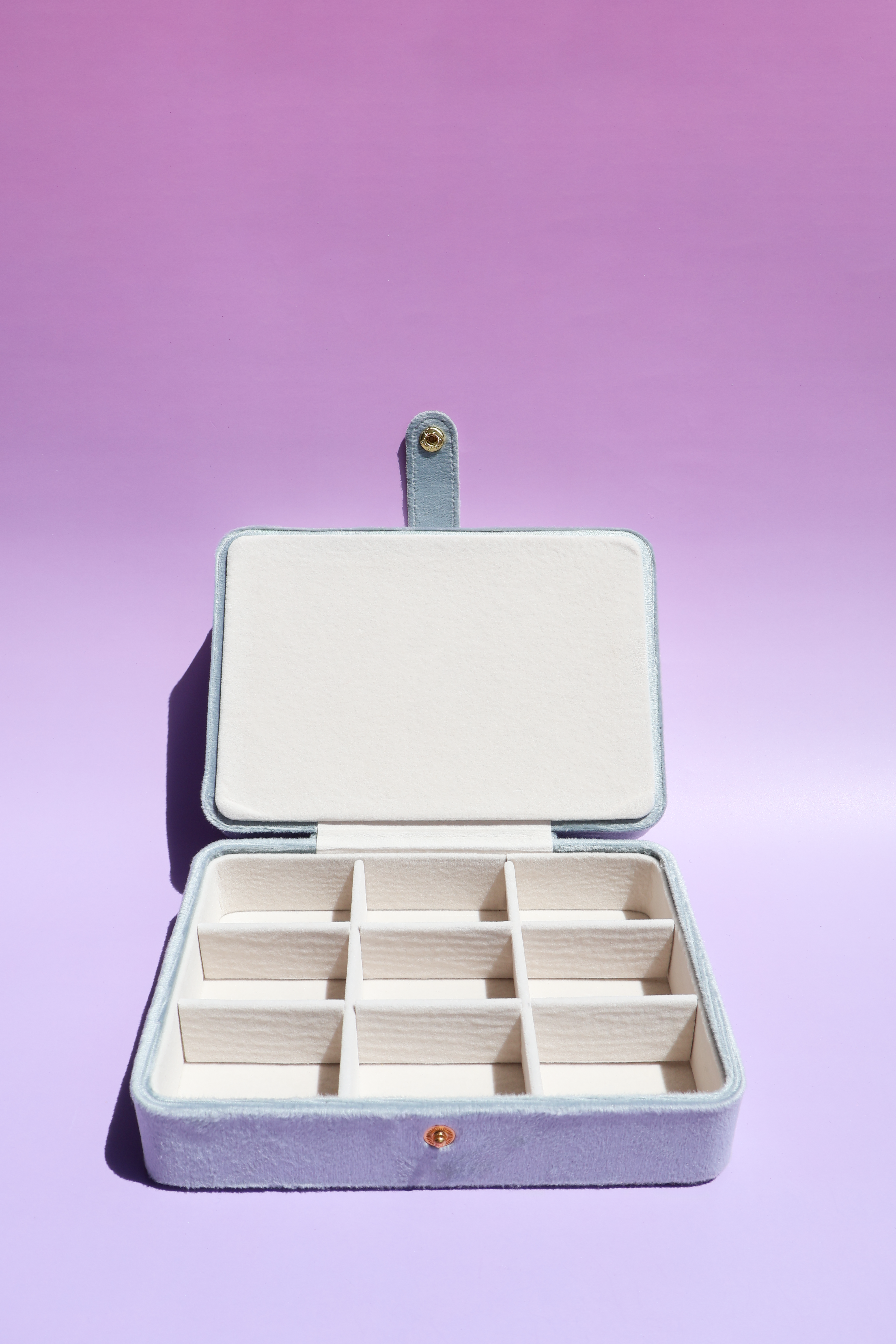Dos niveles de acomodo, terciopelo por fuera, botón dorado y forro suave por dentro