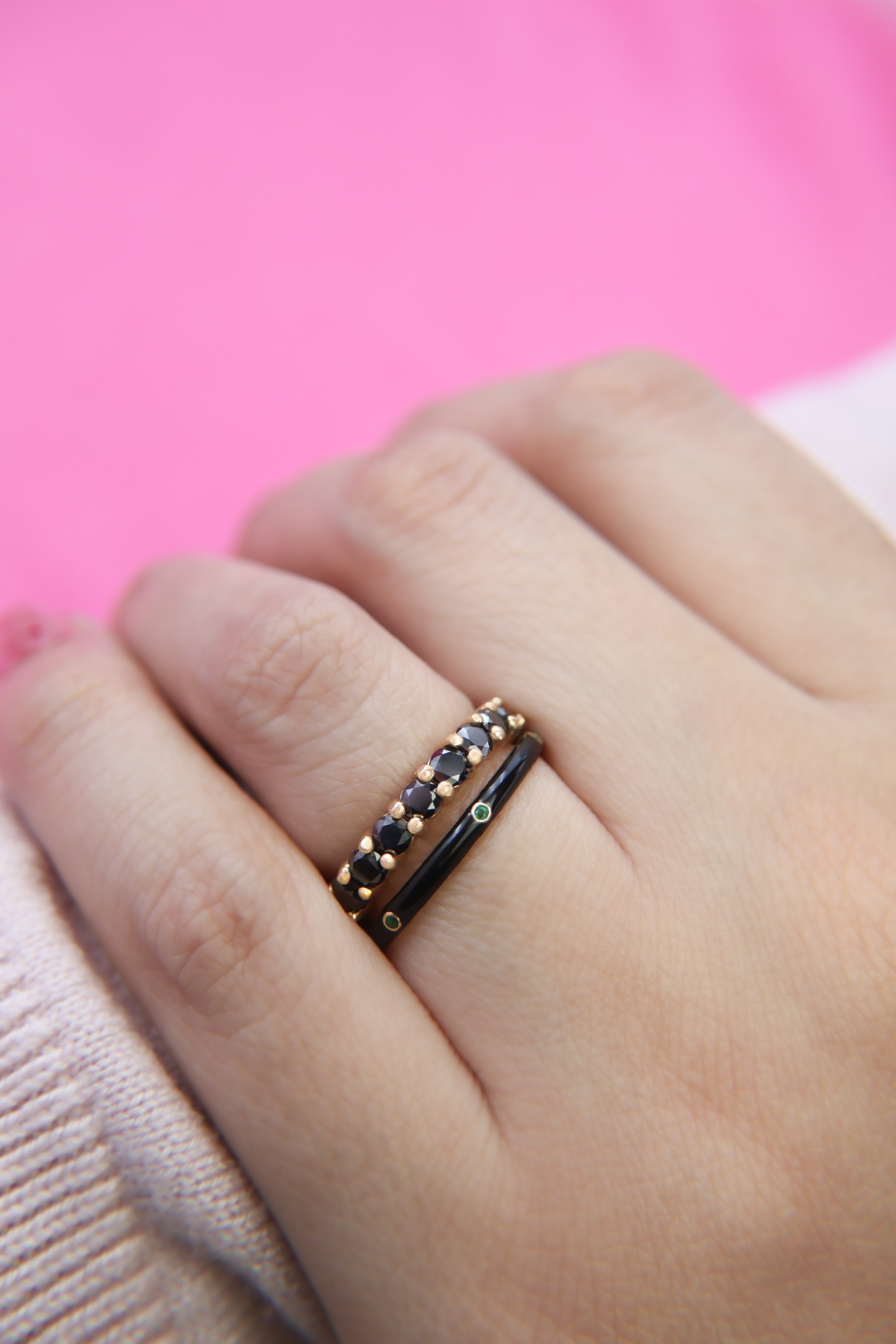Media churumbela hecha en oro de 14k con diamantes negros
