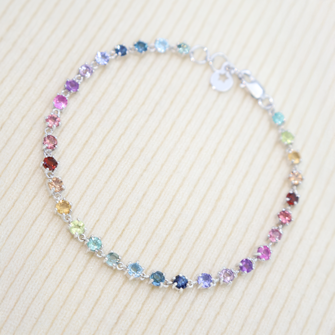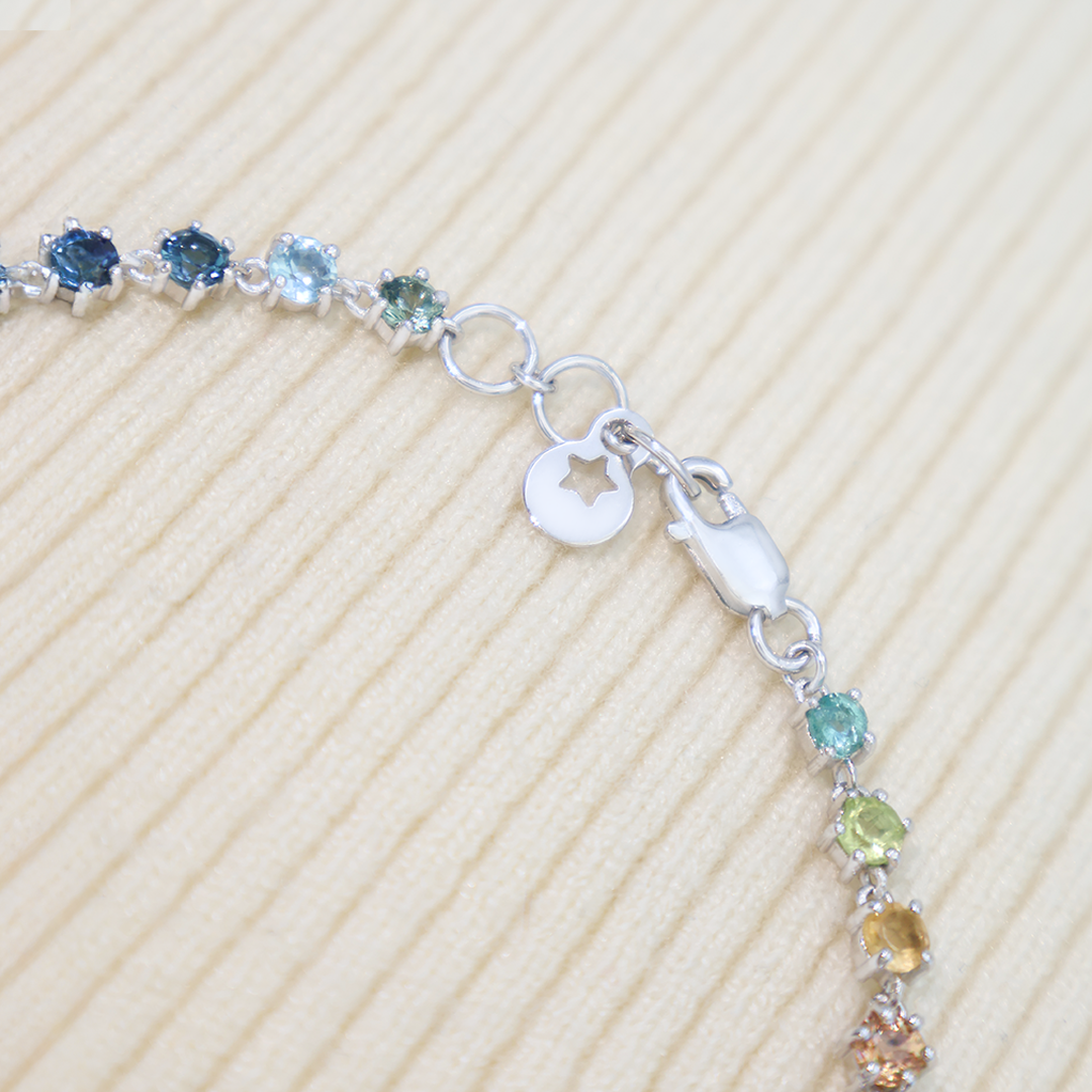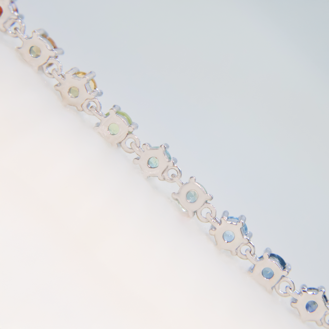 🌈 Con acomodo arcoíris degradado y ajuste cómodo. Con zafiros, esmeralda, rubíes, topacios, granate, tanzanitas, amatistas, citrinos y peridotos