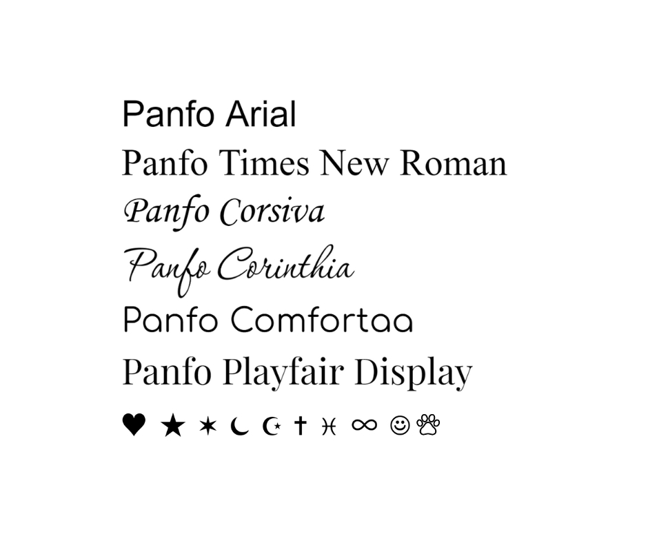 Arial, Comfortaa, Corinthia, Corsiva, Playfair Display, Times New Roman